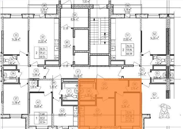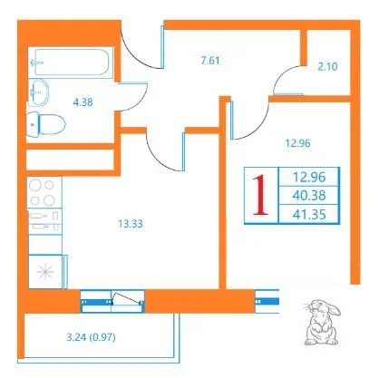 Общая площадь: 41, 35 кв. м